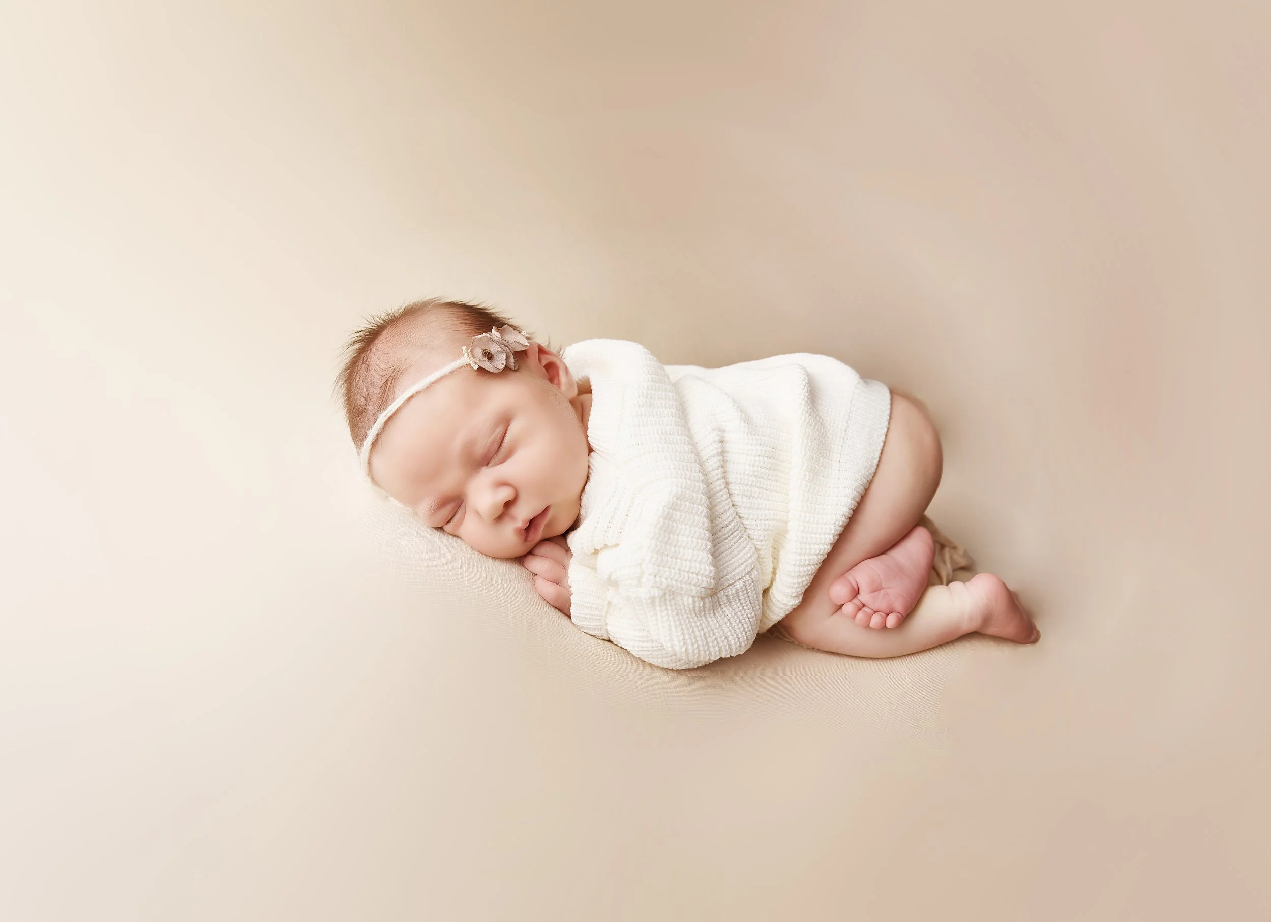 These soft neutral sessions work beautifully for babies of any age and they create such a timeless look for your walls and albums. My approach is always comfort first. Every wrap and every pose is designed to support baby naturally and safely. When they’re relaxed you can see it in their little expressions those tiny smiles and the slow deep breaths that tell you they’re content.