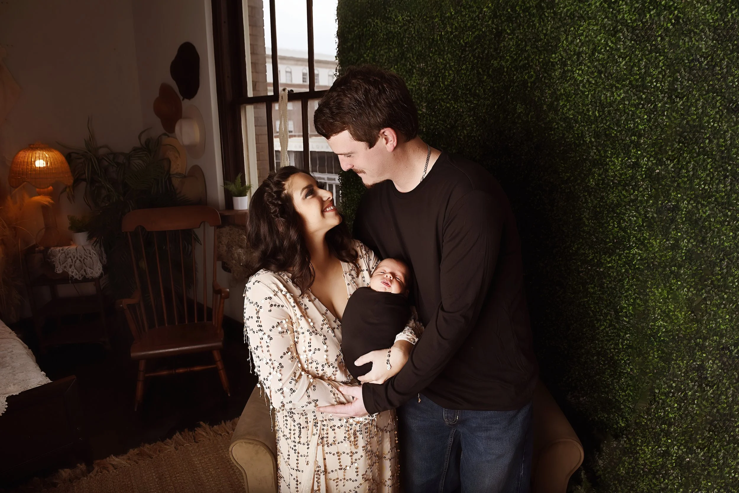 Now, don’t worry. If you aren’t into boho, I can meet you where you are. We can do simple family portraits on a solid background or we can even use my glam room ( it has a black bed, grey couch, fancy stuff) for a more high end look. Whatever you want Mama, I GOT YOU. Want fresh and bright and airy? I can do that too! Whatever look you want, I’ve got it in my 2000 square foot studio.